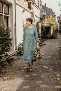 This handmade dress is very comfortable and feminine. Made from locally manufactured pre-washed linen fabric and is perfect for all seasons.