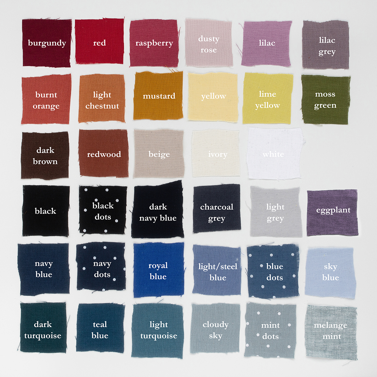 Fabric: 100 % mid-weight pre-washed linen. It’s 100 % Oeko-Tex certified, which means that it meets ecological requirements. It requires very little processing, hypoallergenic, comfortable and suitable for all seasons.
